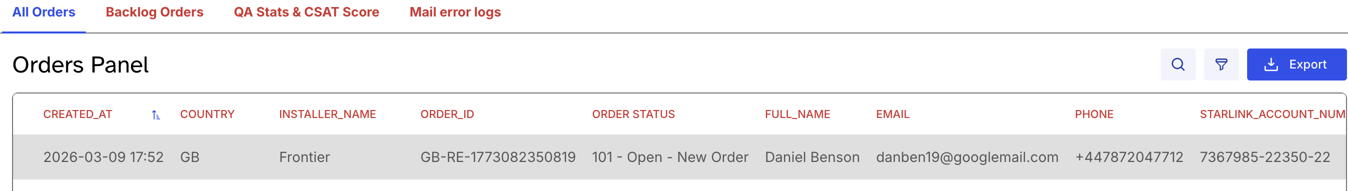 - Check for the Clientin the system via Starlink Account number, Name or other data
