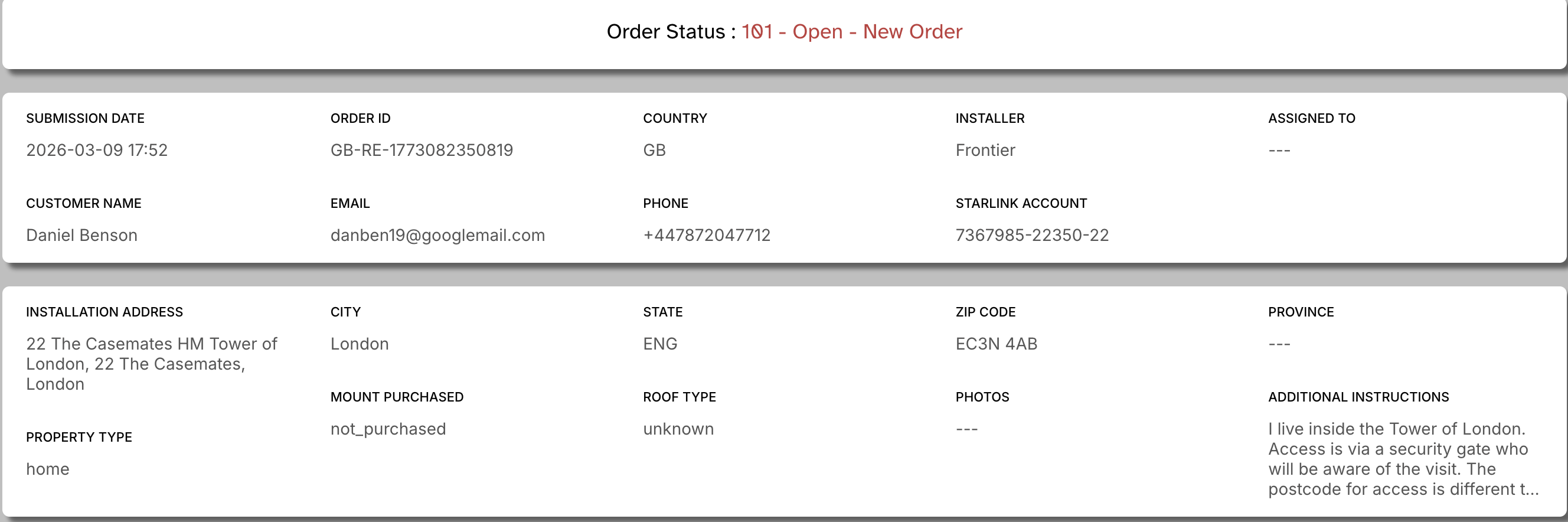- If the client is NOT in the system -> No Order with SBPM was created and the client still need to do it with the link from Starlink