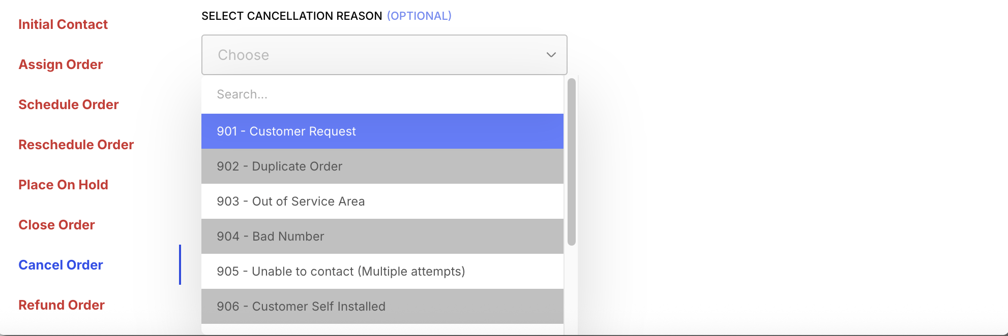 9. On the bottom of this page, you can cancel the the order and choose the reason: